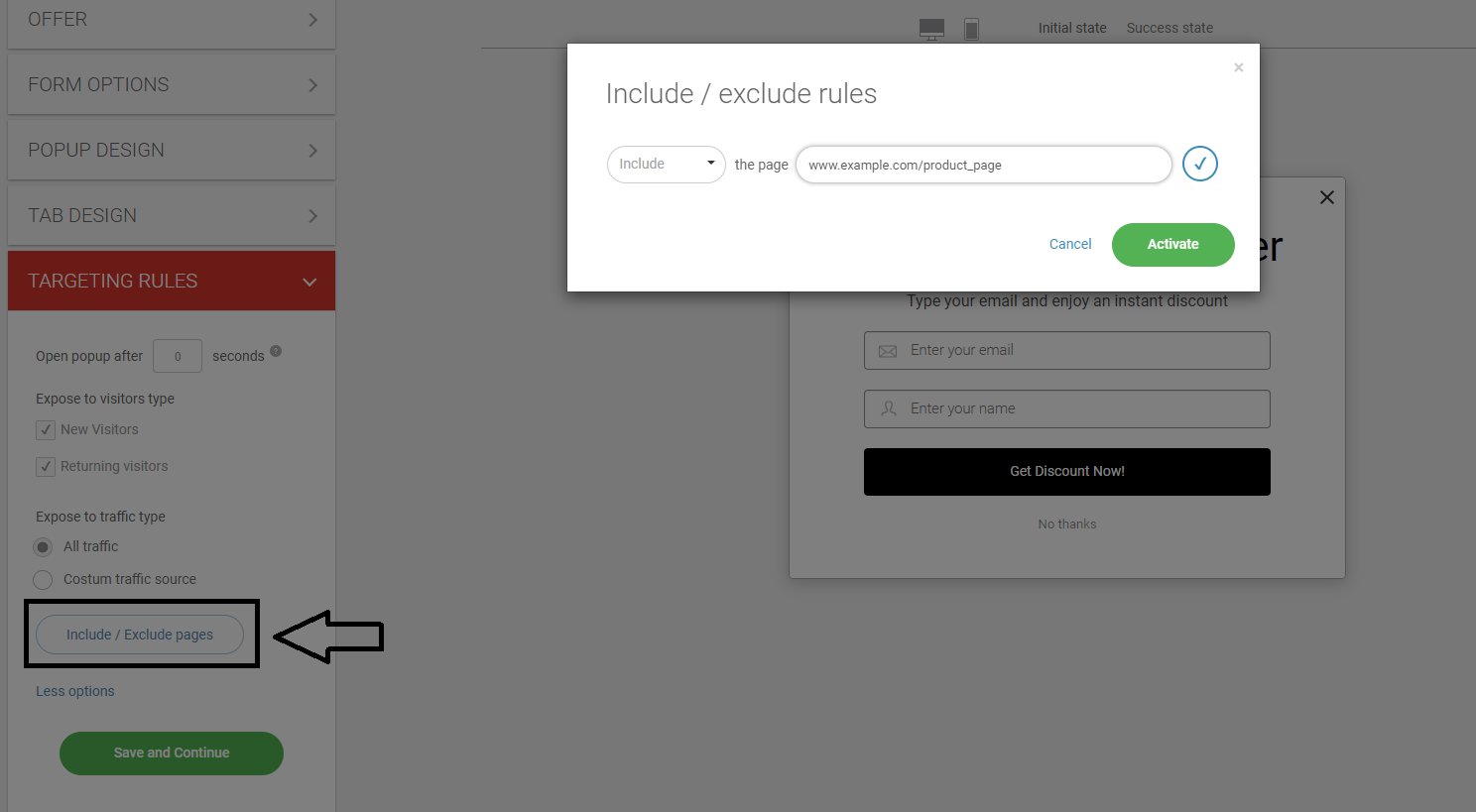 On the screenshot above you may edit the visitors who will see the Coupon Pop and the traffic source.