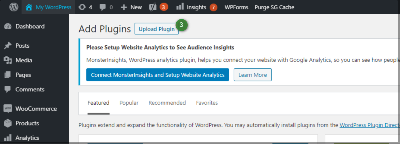 - In the left-hand menu, click Plugins (#1), then click the Add New Plugin button (#2).