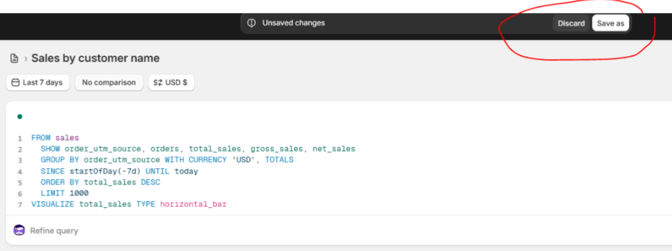 - FROM sales SHOW order_utm_source, orders, total_sales, gross_sales, net_sales
